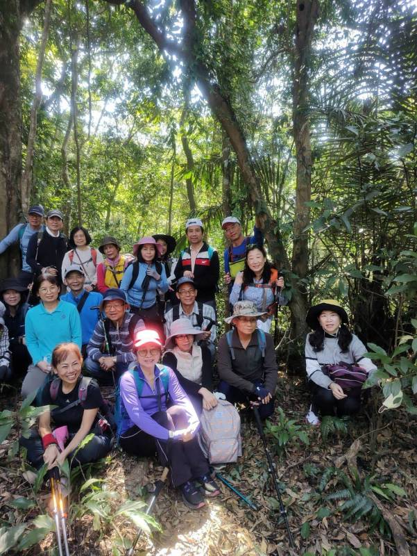 | 7 5/9 法雲寺金童玉女山 | 室內解說 法雲寺位苗栗縣大湖鄉富興村、觀音山上的曹洞宗佛寺,為台灣佛教四大法脈的法雲寺派本山,開山祖師乃覺力法師。此寺與獅潭鄉的南衡宮、萬善祠的建立,皆和屯墾致富的劉緝光、原住民衝突有關。當地建寺傳說則講此寺對面的鷂婆山為該地有名的惡山,尤其主峰形似鳥嘴,風水上代表會叼啄人命。當時原住民經常出草,令居住此地的漢族驚恐度日。相傳當時有一名地理師路過,認為對治惡山之法,唯有在對山設置佛寺。金童山、玉女山連稜為苗栗縣公館鄉與大湖鄉之界稜,從法雲寺古道出發,不僅行經的三個山頭都有陡坡拉繩路段外,其間也有保線 |