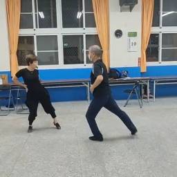 | 倫巴花步-4紐約步接劍步 | 前段課程複習 扇形接女子左轉, 紐約步 紐約步接劍步 配合音樂練習 |