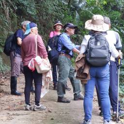 | 9 5/30 家裡山(大坪山) | 室內解說 「加里山」位於苗栗南庄,是「三台疊翠」的最高峰,也是台灣小百岳之一。「加里山」有兩處登山口,分別是「鹿場登山口」與「大坪登山口」。我們今天選擇「大坪登山口」出發,經過「杜鵑嶺」登上「加里山」,在下切至「風美溪」接回鐵道的小O型路線。踏進登山口的第一步,是密密麻麻筆直的人造杉木群,上至鞍部有六十年代荒廢的台車遺跡及機具,徜徉在厚實柔軟杜鵑嶺,登至山頂有360度視野,可以展望雪山聖稜線及竹苗山區。沿途可看見水晶蘭、,一葉蘭、森氏杜鵑花、台灣杜鵑、西施花、八角蓮、十大功勞、阿里山十大功勞還有紅豆杉等。 |