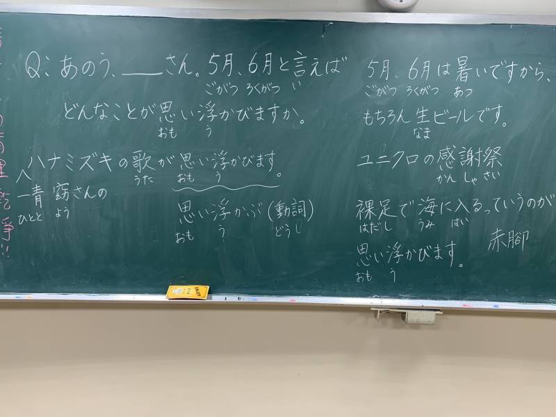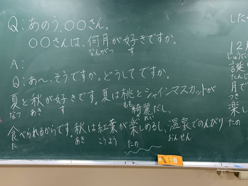 | 日本的四季與節慶 桜、花見、紅葉、雪景色、 初詣、節分、雛祭り、端午の節句、七夕、月見、紅葉狩り、除夜の鐘、イルミネーション 學期總結 | 季節+には+名詞+があります。 名詞+を見に行きたいです。 名詞+がきれいです。 季節+の+名詞+が好きです。 季節+には+動詞+ます。 複習本學季課程內容 |